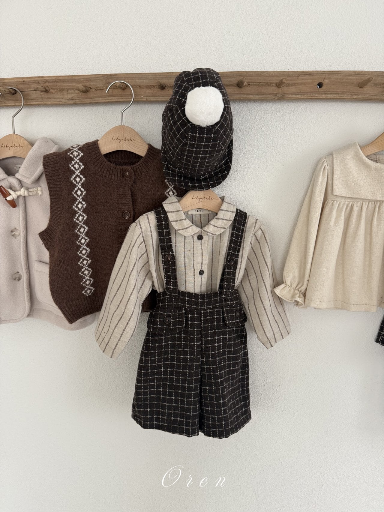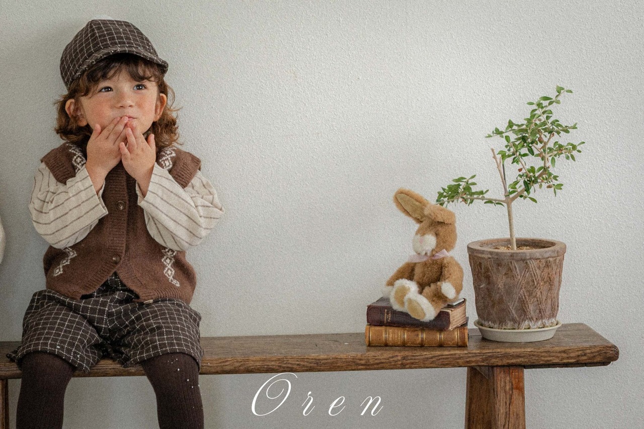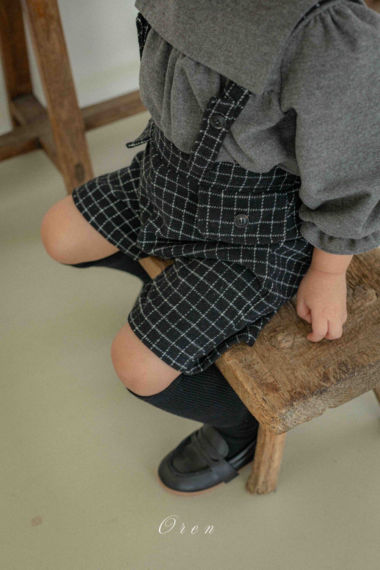 《予約》【OREN】bebe) Miel Wool Check Suspender Pants